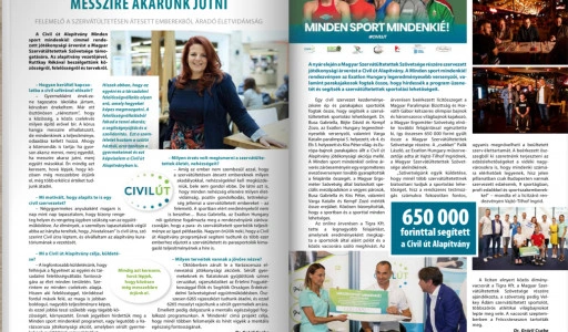 Civilút a SzervuszbanMár online letölthető és olvasható a Magyar Szervátültetettek Szövetsége Szervuszmagazinja. Számtalan érdekesség és hasznos információ mellett a lapban részletes beszámoló olvasható a Minden sport mindenkié! programról.A tavaly nyáron meghirdetett jótékonysági programban az Exatlon Hungarylegeredményesebb sportolói és a parakajakosok vettek részt. Online árverésen és ajótékonysági evezésen összesen 650 ezer forint gyűlt össze a Magyar…